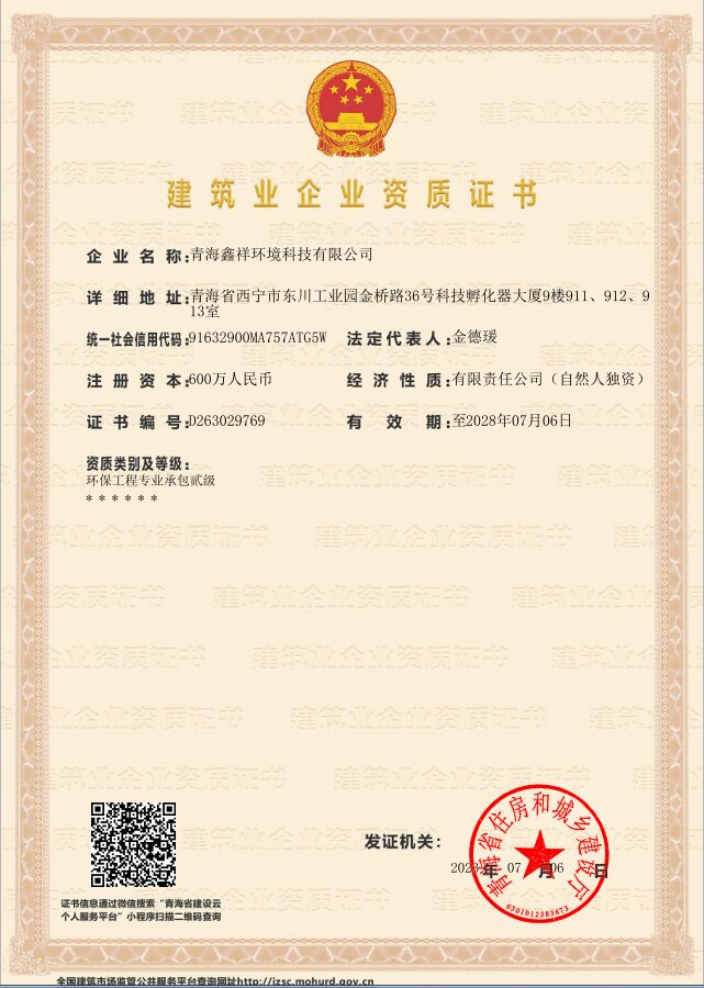 版权所有:青海鑫祥环境科技有限公司 技术支持:18997231118 地址:青海省西宁市东川工业园区金桥路 36 号科技孵化大厦 9 楼